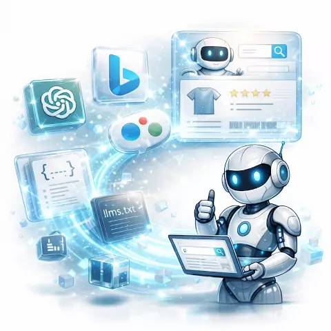 Das Plugin macht Ihren Shopware-Shop für generative KI-Suchsysteme wie ChatGPT, Bing Copilot oder Google SGE verständlich. Dafür stellt es strukturierte Feeds, JSON-LD-Daten, eine llms.txt sowie eine Markdown-Version des gesamten Shops bereit. KI-Agents können Produkte, Kategorien und Inhalte dadurch korrekt interpretieren und in Antworten ausspielen.