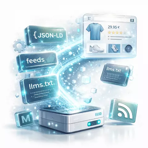 Durch die Kombination aus Feeds, JSON-LD, llms.txt und Markdown-Shopansichten wird Ihr Shop nicht nur agent-ready, sondern bietet Agents mehrere, klar strukturierte Perspektiven auf dieselben Produkt- und Inhaltsdaten.